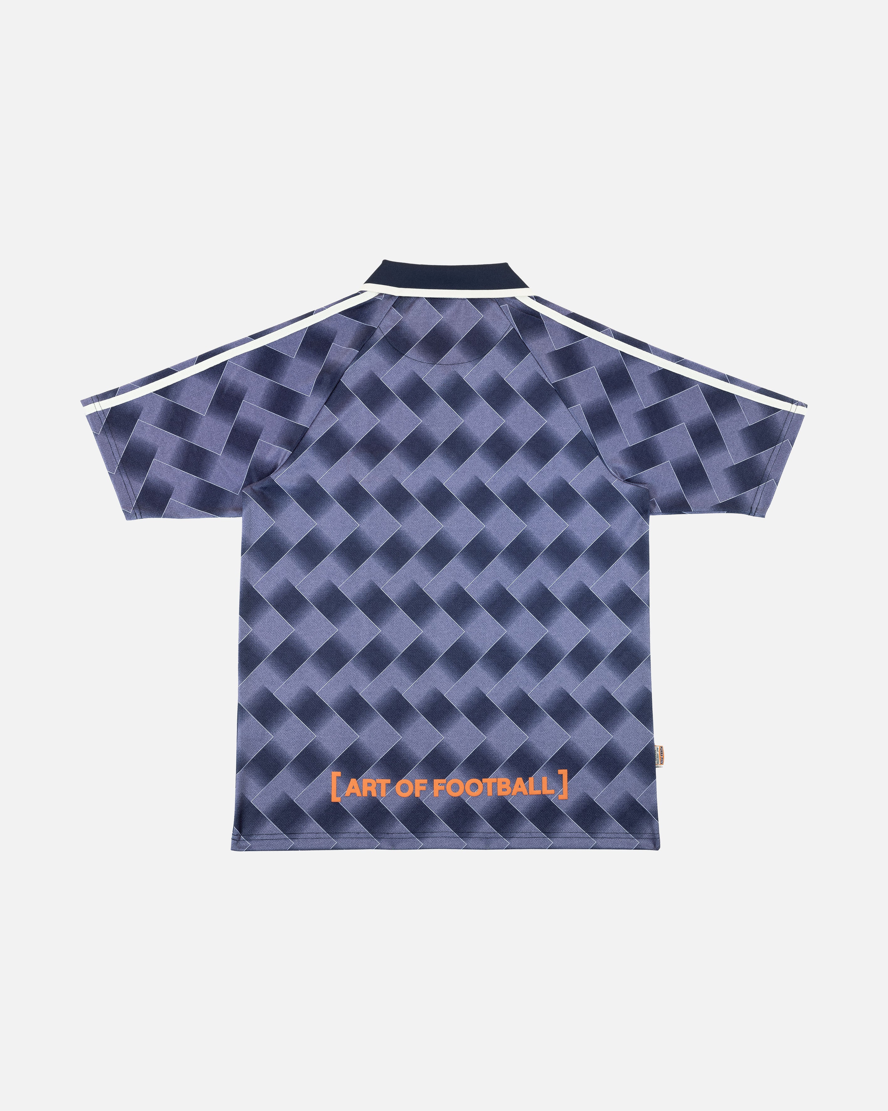 • This limited edition design is a regular fit with slightly dropped shoulders, featuring an all-over graphic print, short sleeves, ribbed V-neck with knitted collar, finished with signature ART OF embroidered accents.