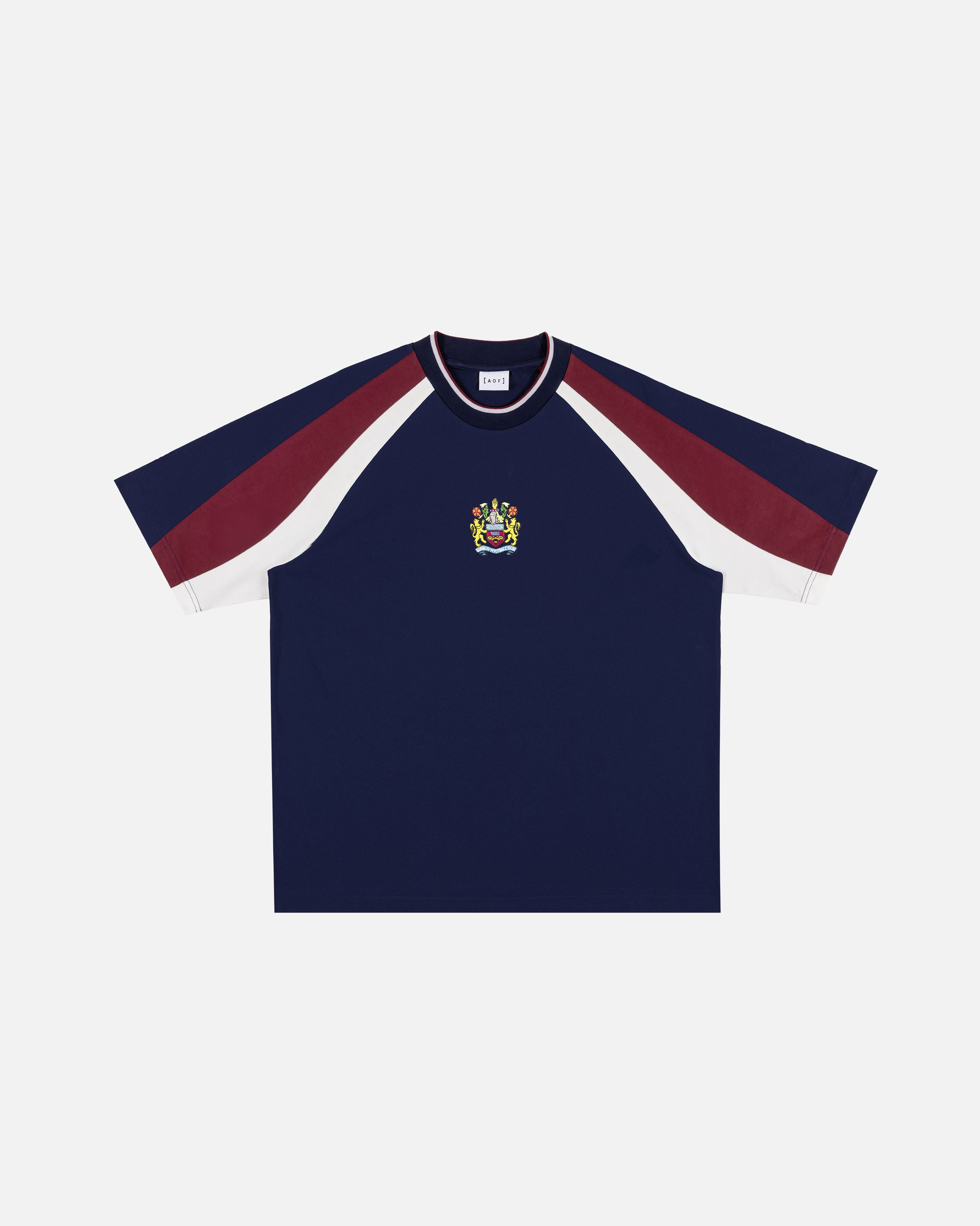 - Panelled short sleeve tee crafted from premium 100% cotton. Designed with contrast sleeve panelling and embroidered club crest. Features a ribbed crew neck, oversized fit, and clean topstitched seams.