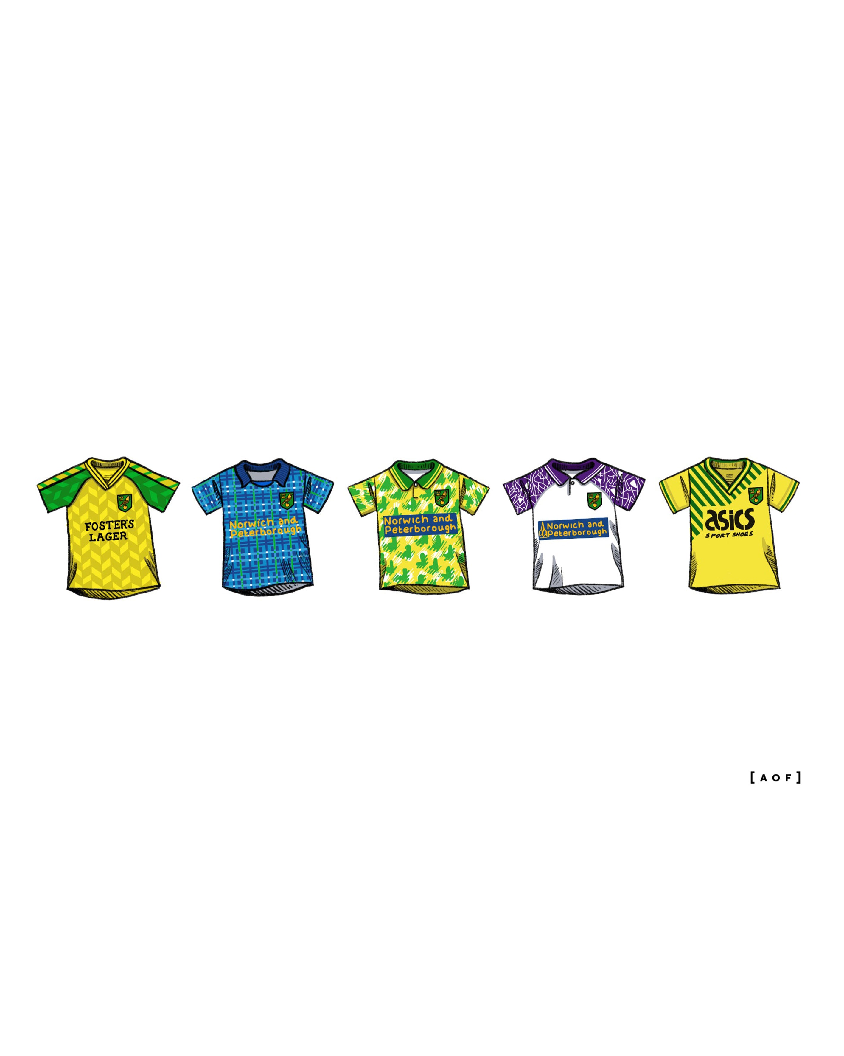 - Design: A collection of classic Norwich City football shirts as suggested by Canaries fans.