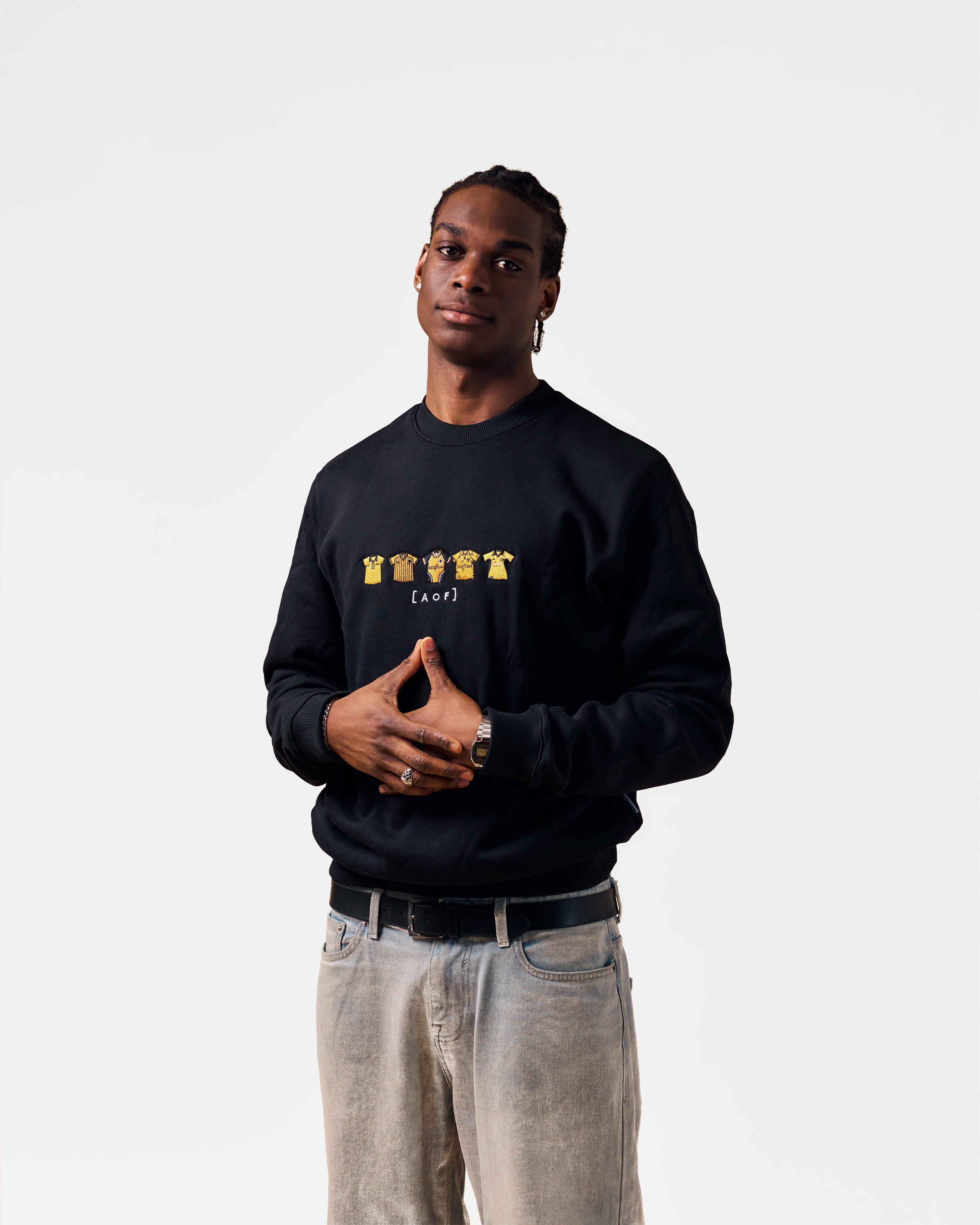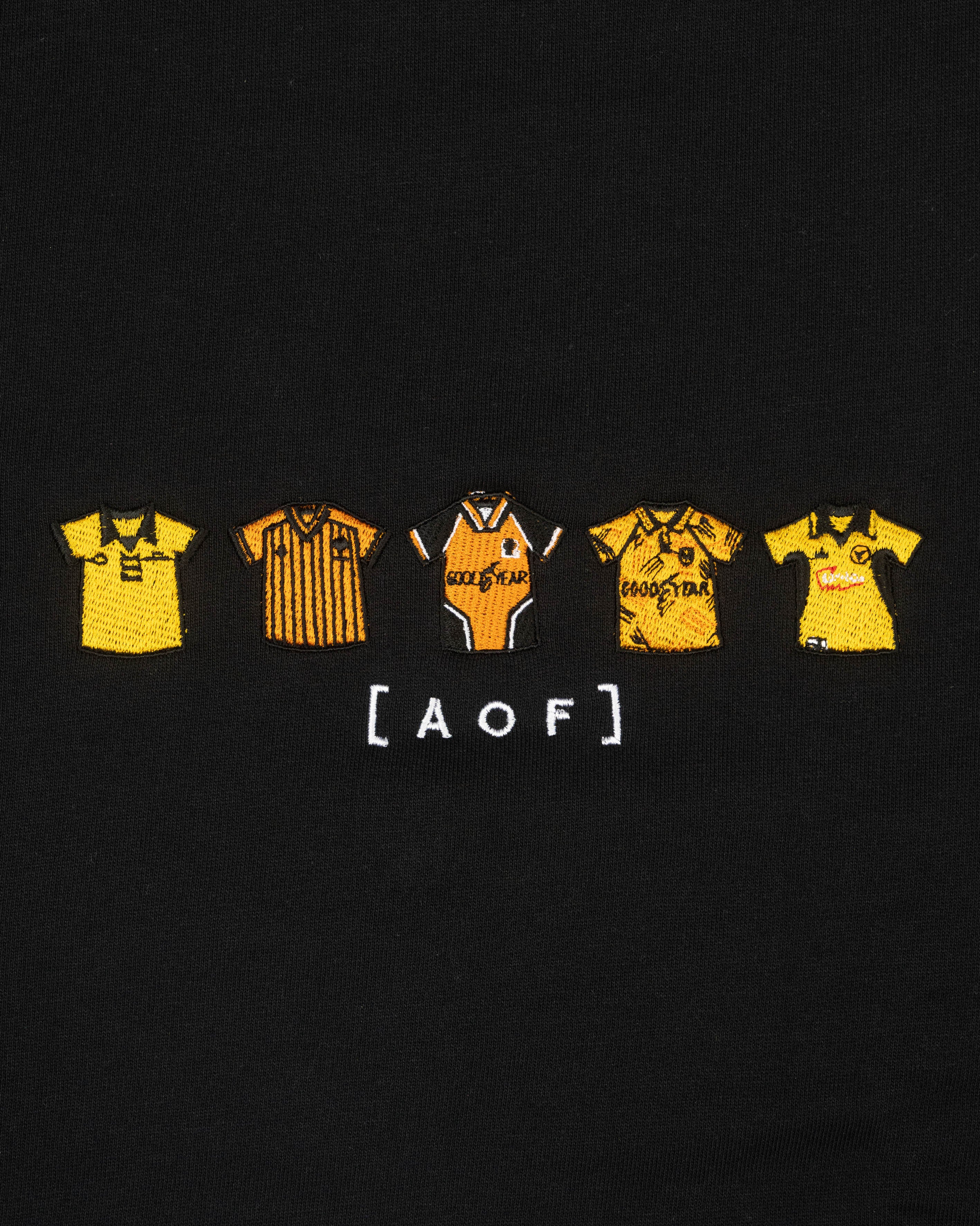 Graphic Design: The fabric of football history. Over 25,000 stitches, 30 minutes of embroidery. A collection of classic football shirts
